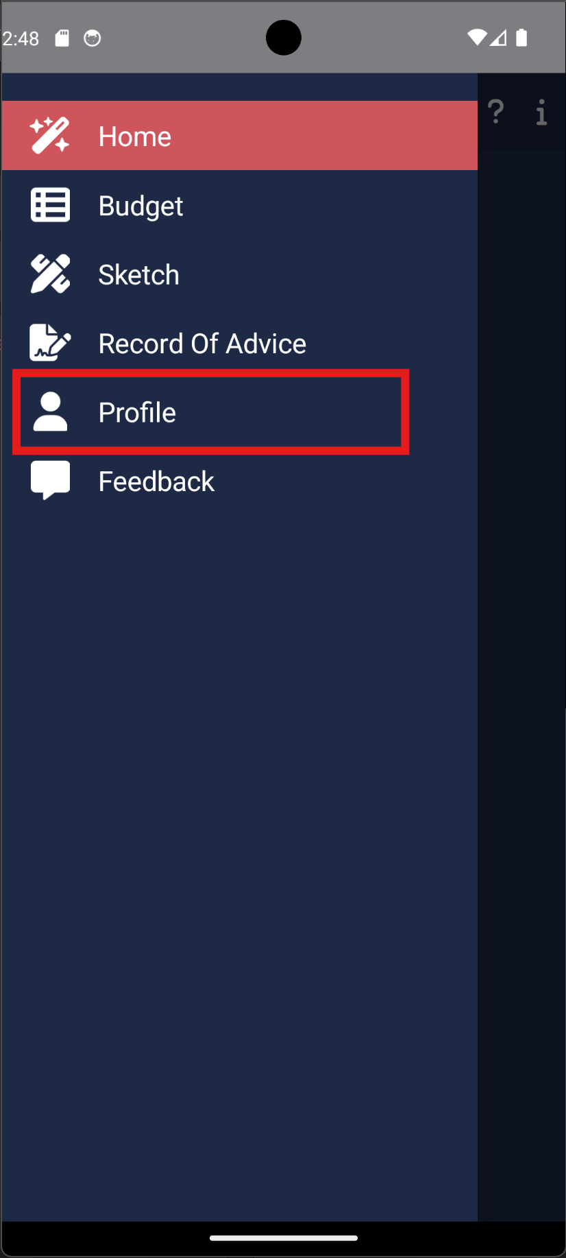 Tap “Delete Account”. Follow the prompts to delete your profile and all your data. Please note that this is irreversible. You may continue to use the app but you will have to recreate your account to contact an Adviser.